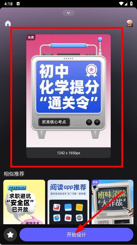 3、点击页面底部的开始设计按钮,进入模板编辑界面。