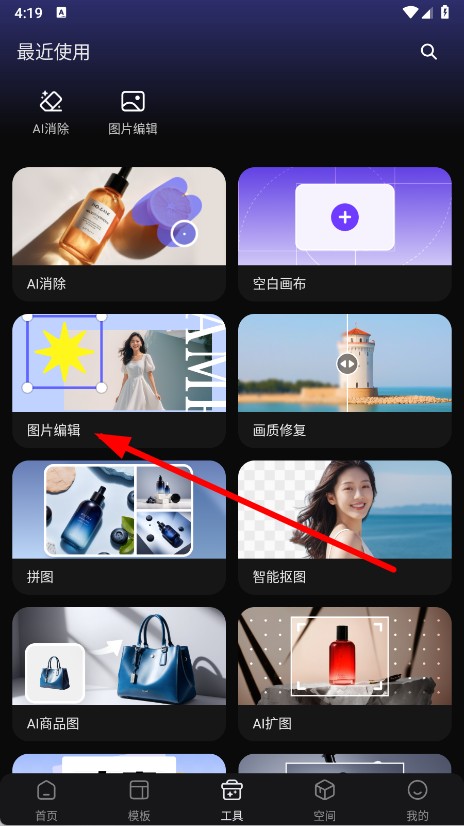 1、打开美图设计室,点击底部导航栏的工具选项。