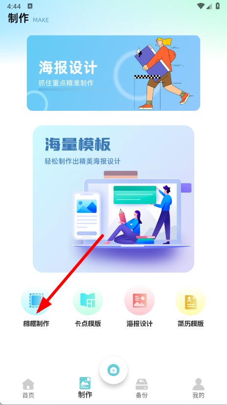 2、在制作页面,点击相框制作功能模块。