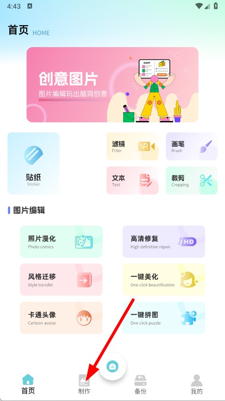 1、打开APP,点击底部导航栏的制作选项。