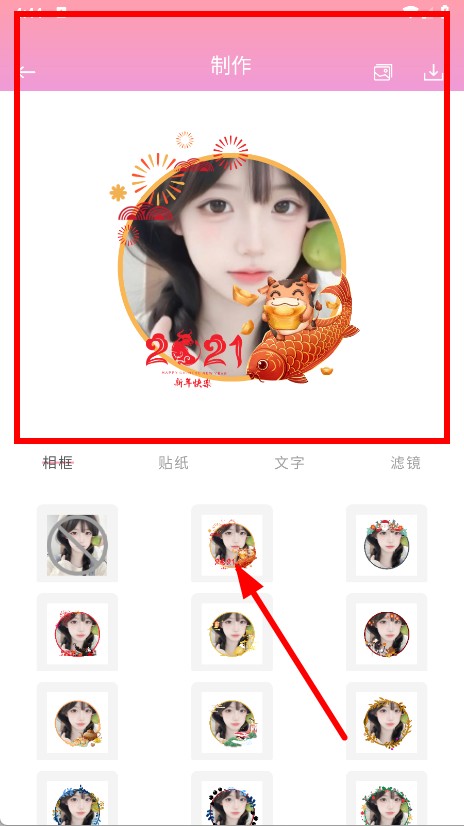 4、在下方的相框模板列表中,选择心仪的相框模板,完成带相框图片的制作。