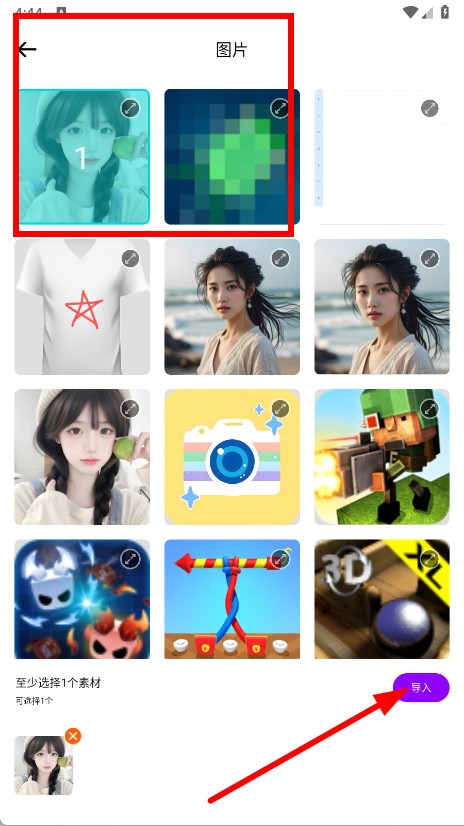 3、挑选需要添加相框的图片,然后点击导入按钮。