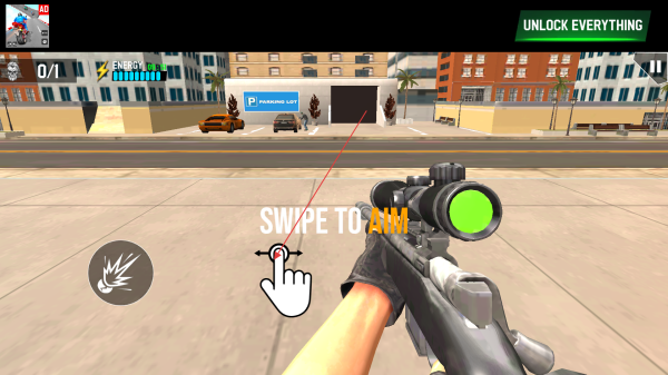 1、进入界面,通过滑动屏幕来瞄准目标,操作时注意观察目标位置与周围环境。