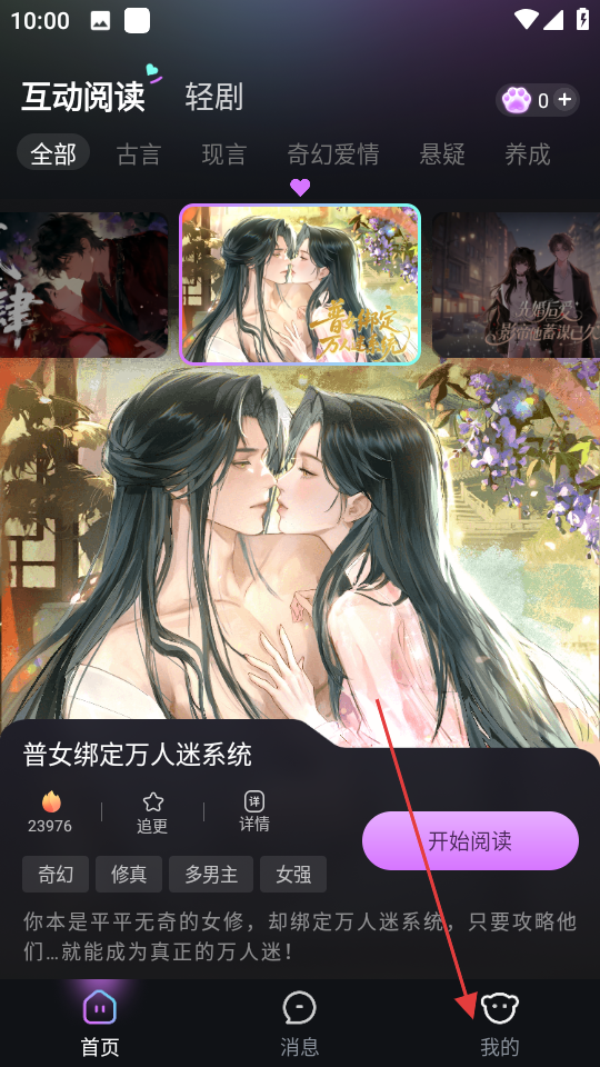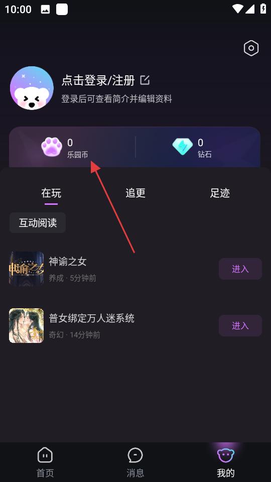 1、在互动阅读首页,点击我的,进入个人中心页面。