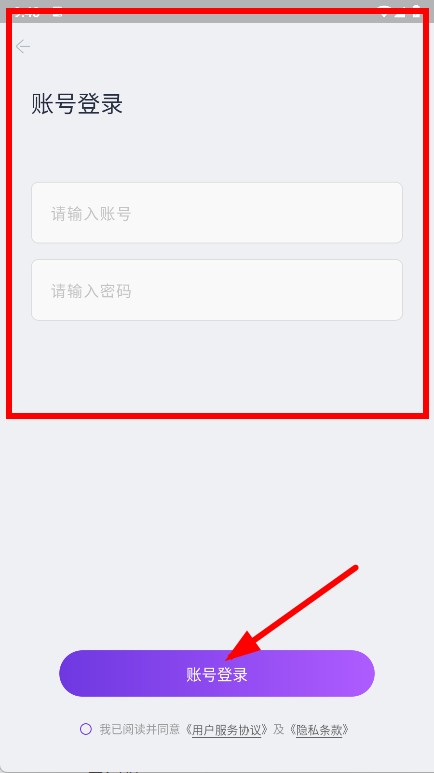 4、输入账号和密码,勾选同意相关协议后,点击账号登录按钮完成注册。