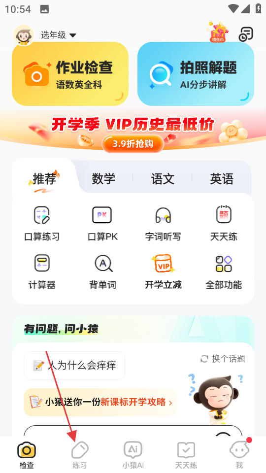 1、拍摄练习题目:点击拍照检查功能,将孩子的练习页面对准镜头拍摄,确保题目清晰完整,软件会自动识别内容。