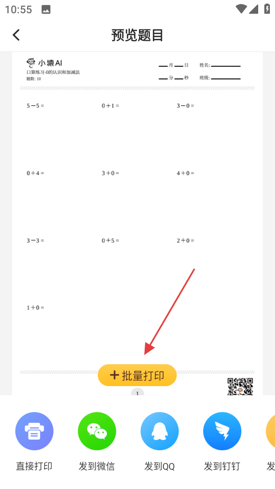 3、在预览题目页面,点击批量打印,进入题目选择页面。
