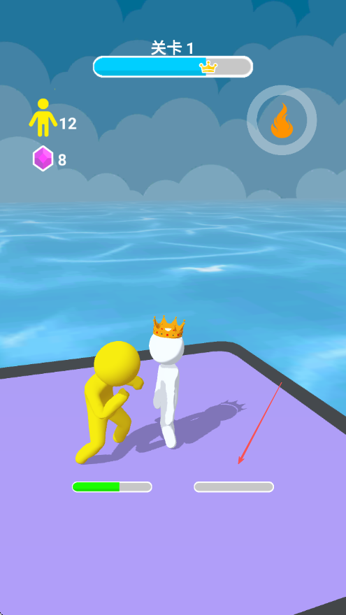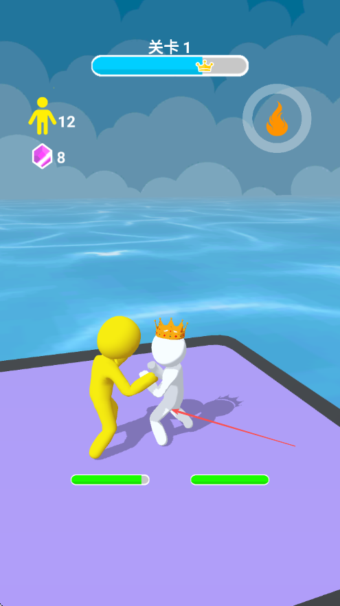 3、带领队伍前进,躲避其他颜色小人的阻拦,持续朝戴着皇冠的目标敌人前进。