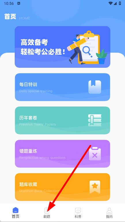 1、初次使用明确备考方向:注册后在个人中心设置备考目标,系统推荐适配题库,设置每日刷题量与学习时段,开启刷题提醒,确保每天有固定练题时间。