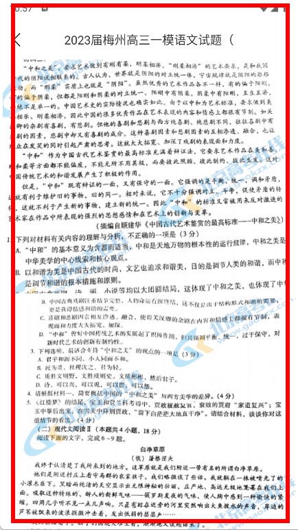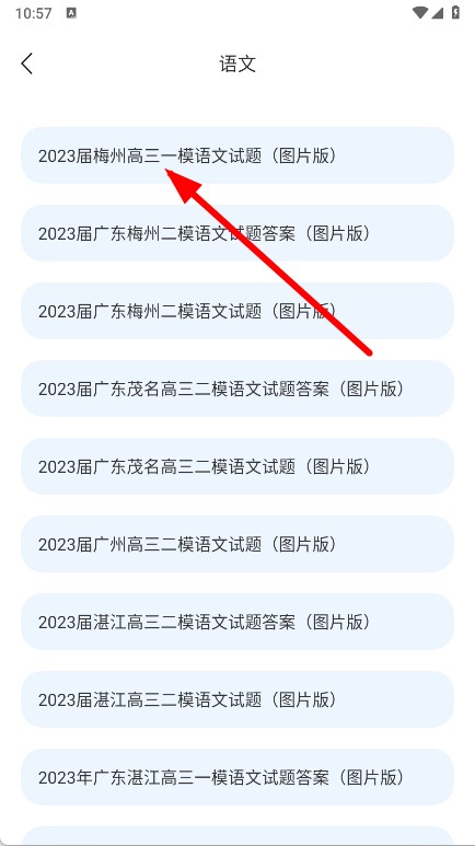 3、进入语文科目试题列表后,点击2023届梅州高三一模语文试题。