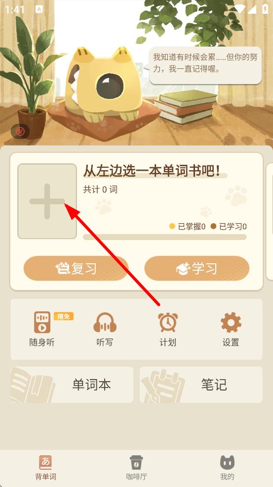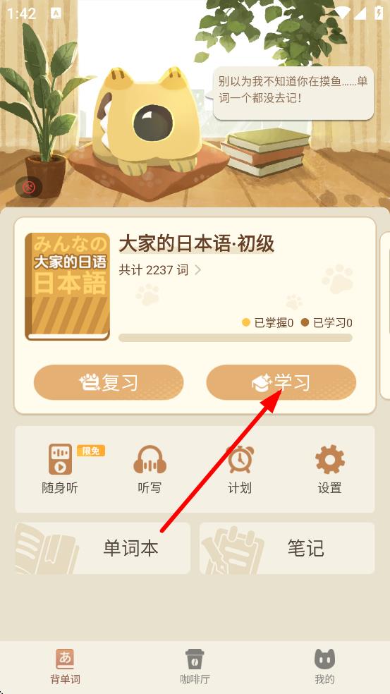 4、选好单词书后,回到主界面点击学习,开始学习该单词书的单词。