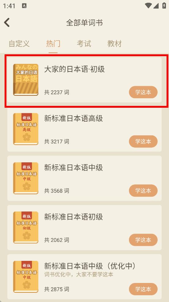 3、在分类下,选择要学习的单词书,如大家的日本语初级。