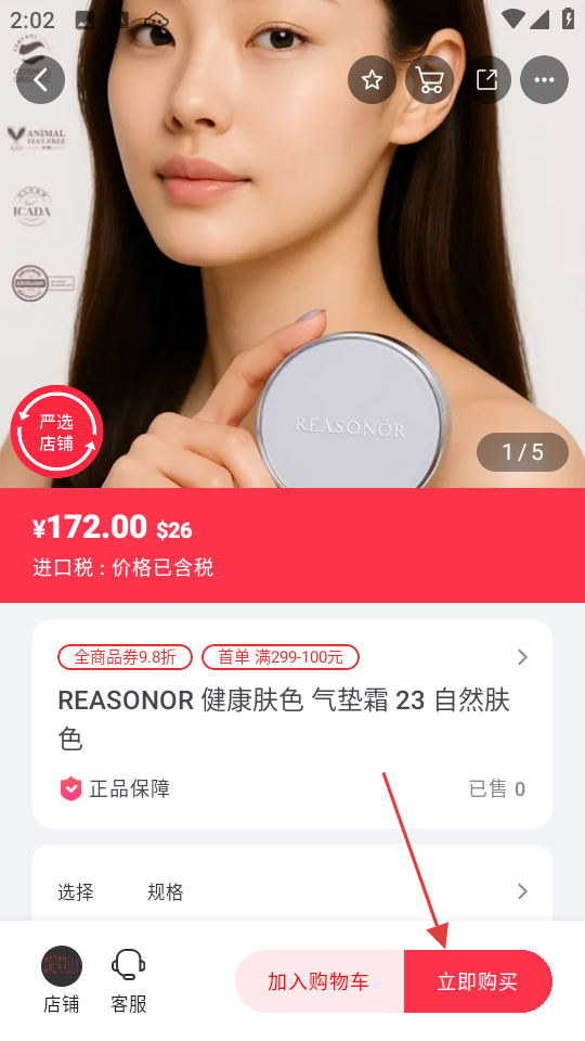 3、在底妆商品列表中,选择自己想买的商品,进入商品详情页。