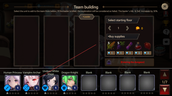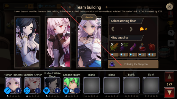 3、选择好队伍成员后,点击EnteringtheDungeon进入地下城,开启冒险挑战。