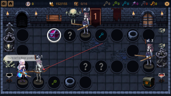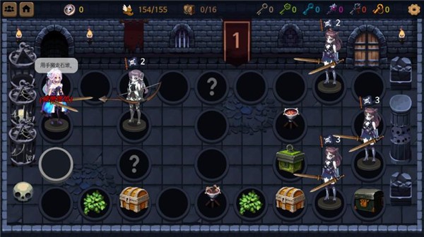 4、进入地下城场景,操控角色探索地图,遇到问号区域可触发随机事件,找到宝箱能获取道具和资源。