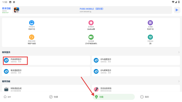 3、点击功能选项,浏览帧率显示等各类功能模块。