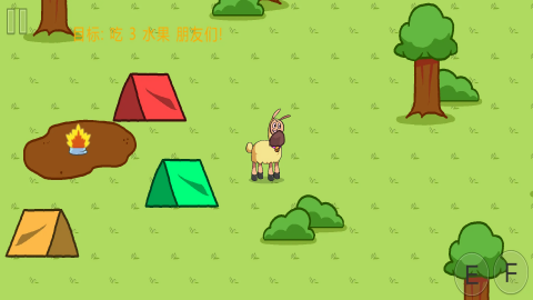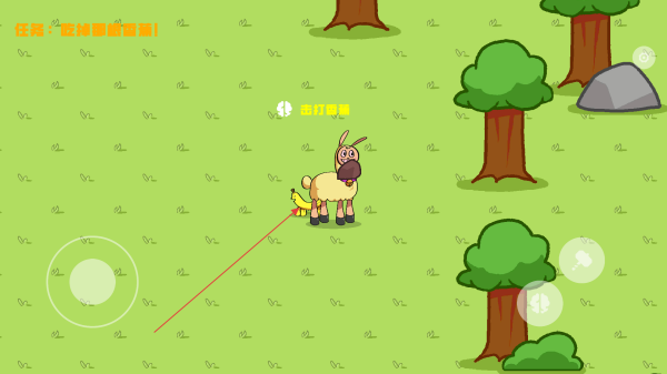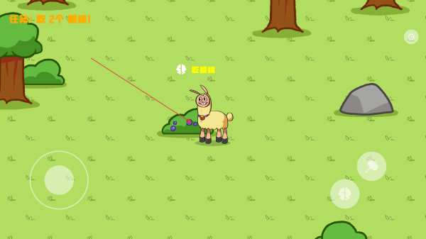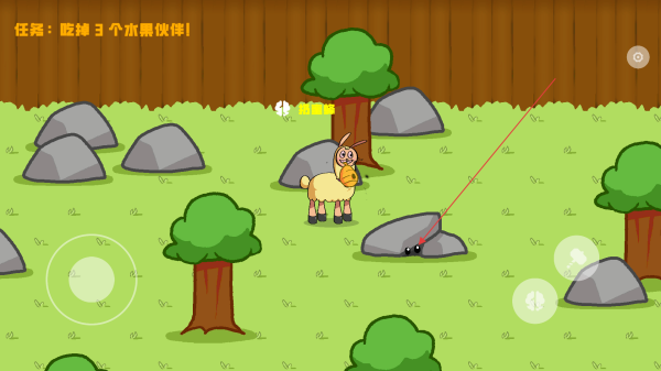 1、进入游戏,通过左下方虚拟摇杆操控拉姆移动,在场景中寻找任务所需食物。