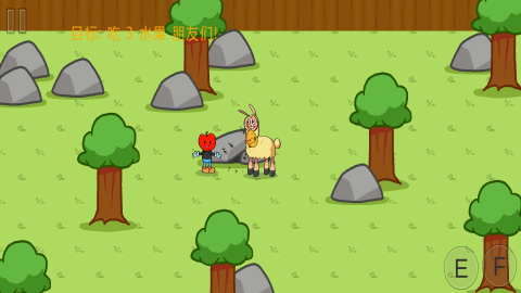 4、在移动过程中,注意场景中躲避的水果伙伴,用蜜蜂蛰出水果伙伴,再吃掉它顺利完成各项任务。