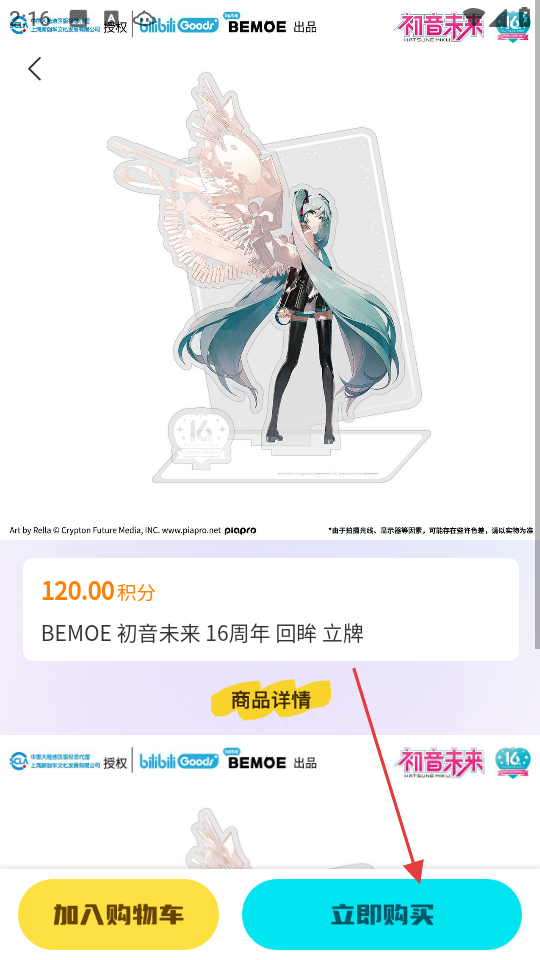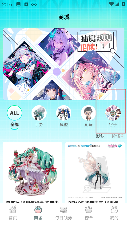 3、在谷子商品列表中,选择心仪商品,如初音未来立牌。