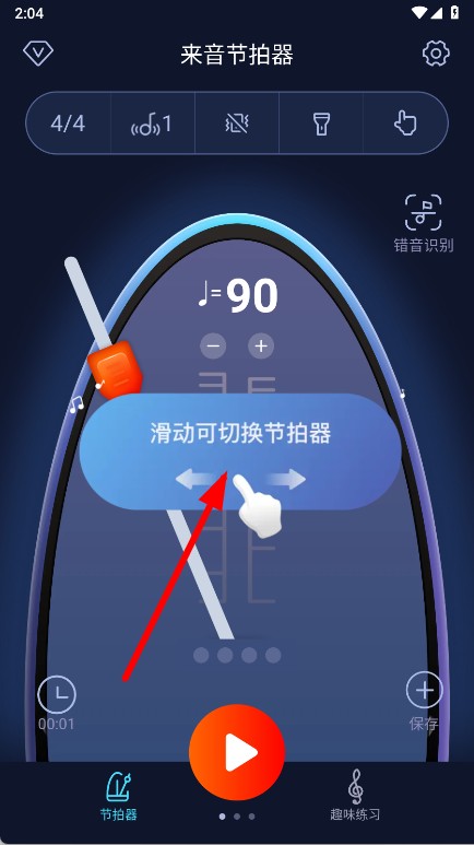 2、在来音节拍器主界面,滑动可切换节拍器样式。