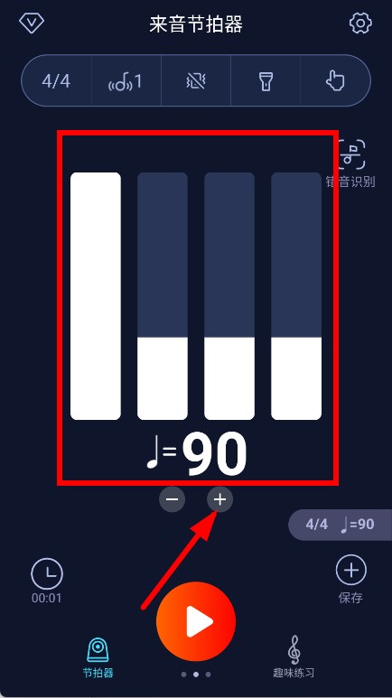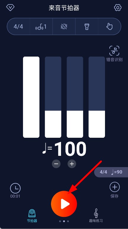 4、点击底部红色播放按钮,启动节拍器,辅助乐器练习。