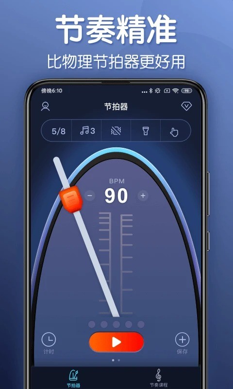 1、精准度优于物理节拍器:采用专业计时技术,节拍间隔稳定无误差,不会像物理节拍器因机械磨损变不准,长期使用能帮助培养稳定的节奏感,提升练习质量。