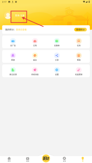 2、在个人中心,点击登录/注册按钮,进入账号操作界面。