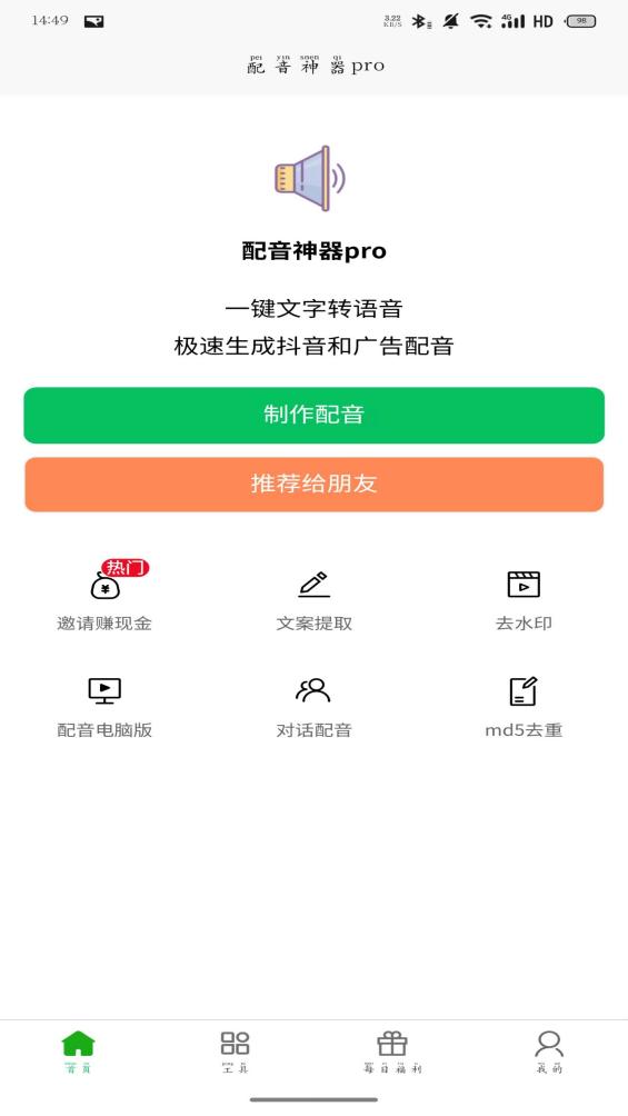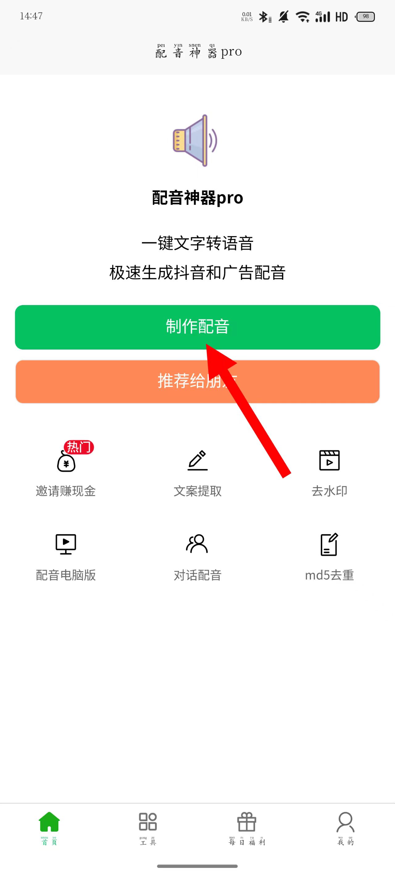 1、打开配音神器pro,点击首页的制作配音按钮。