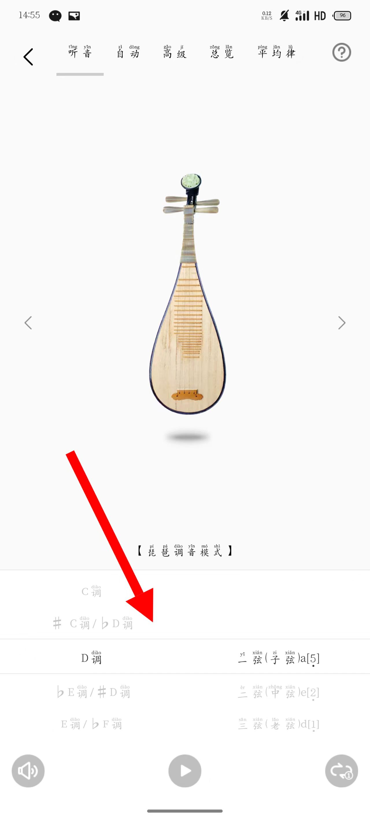 3、进入后,可在琵琶调音模式下选择调式,设置琵琶的调音参数。