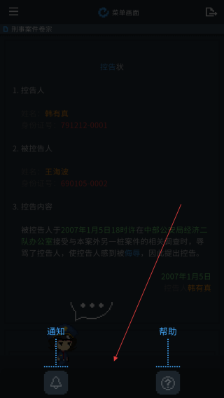 4、在案件展示界面,查看控告人,被告人及控告内容等信息,还能点击通知和帮助,获取案件的最新消息或寻求相关帮助。