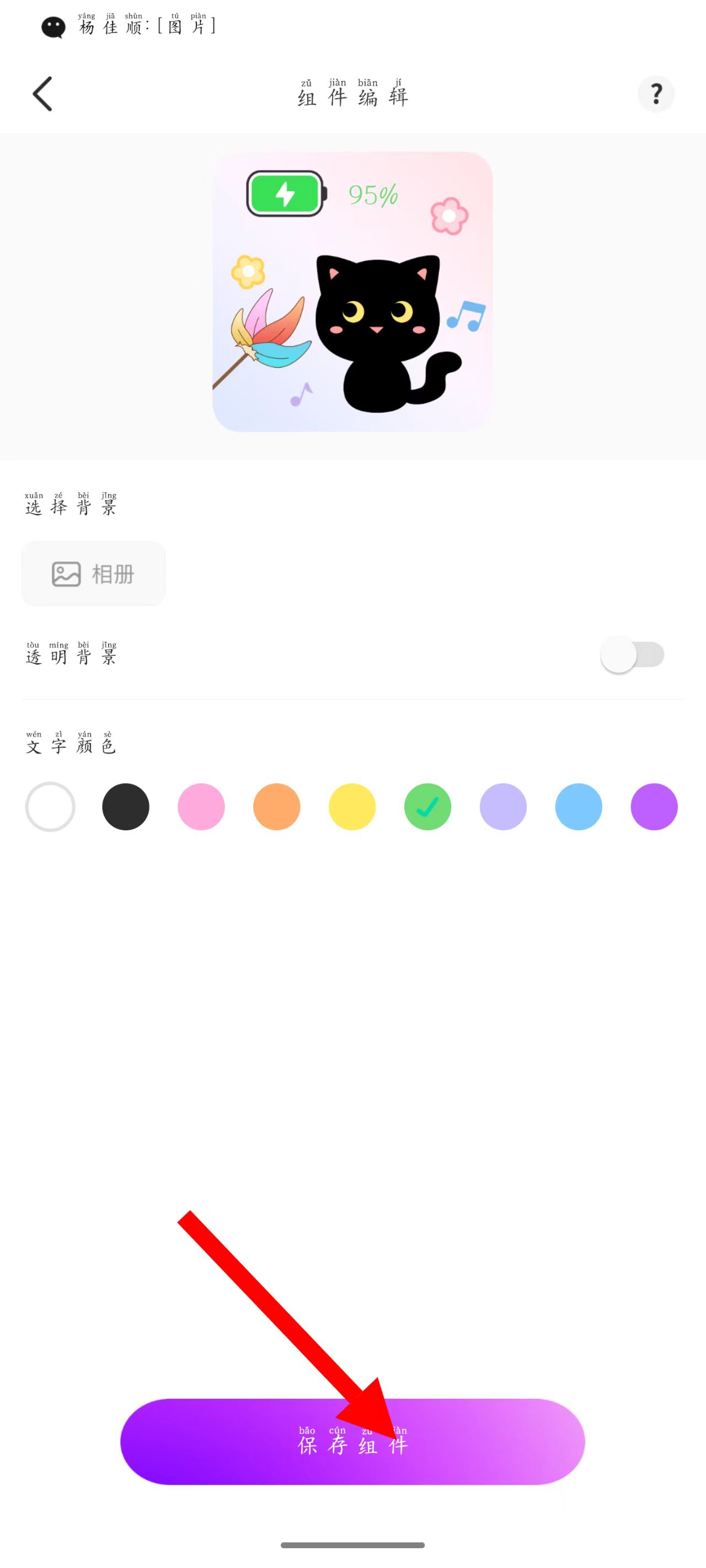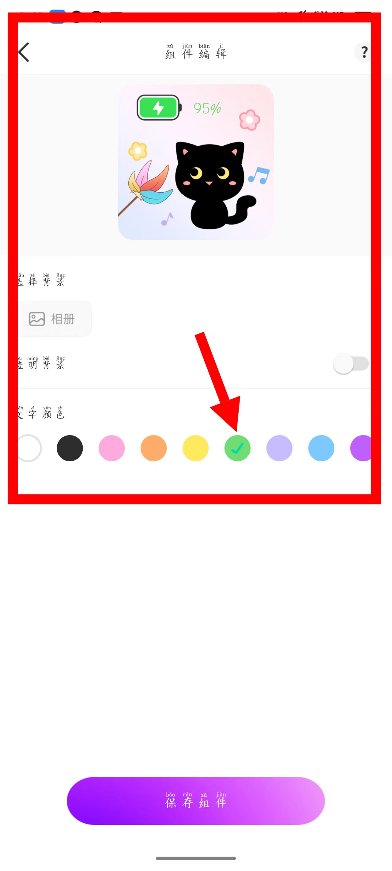 3、在组件编辑页,可选择背景、设置透明背景,还能挑选文字颜色。