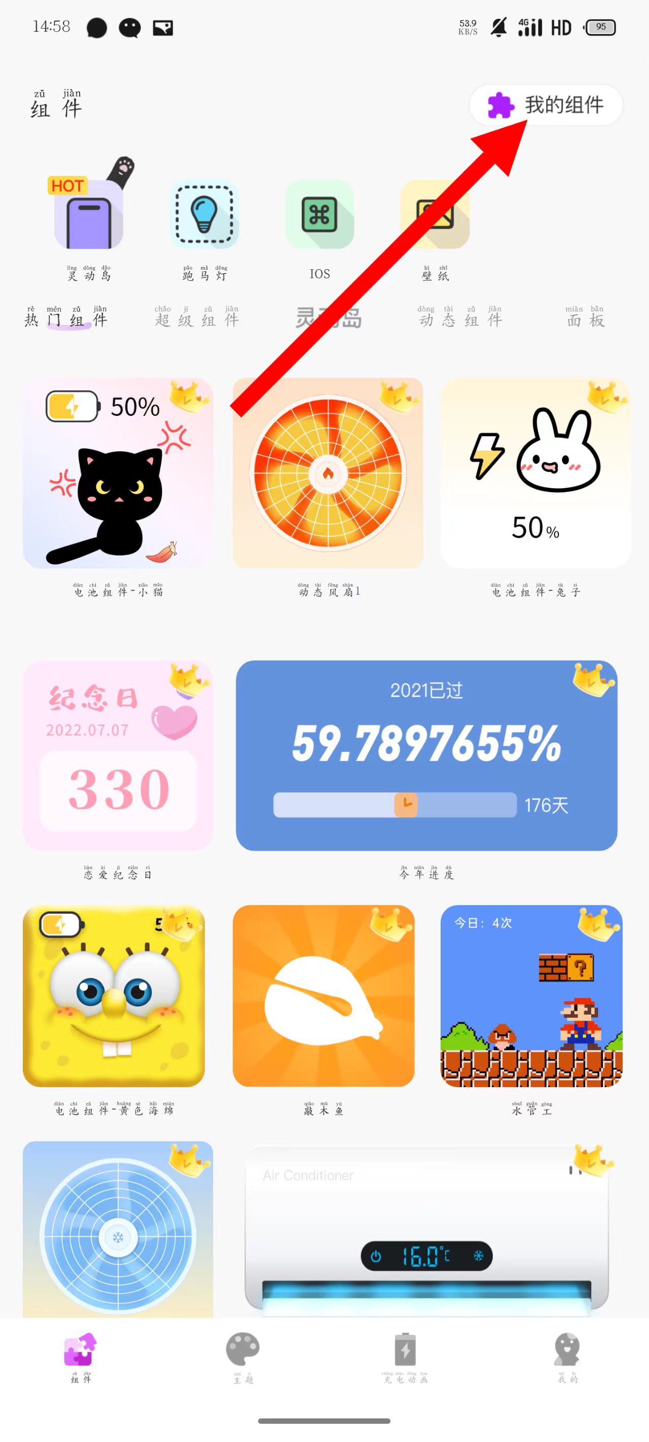 1、打开灵动小组件,点击右上角我的组件。