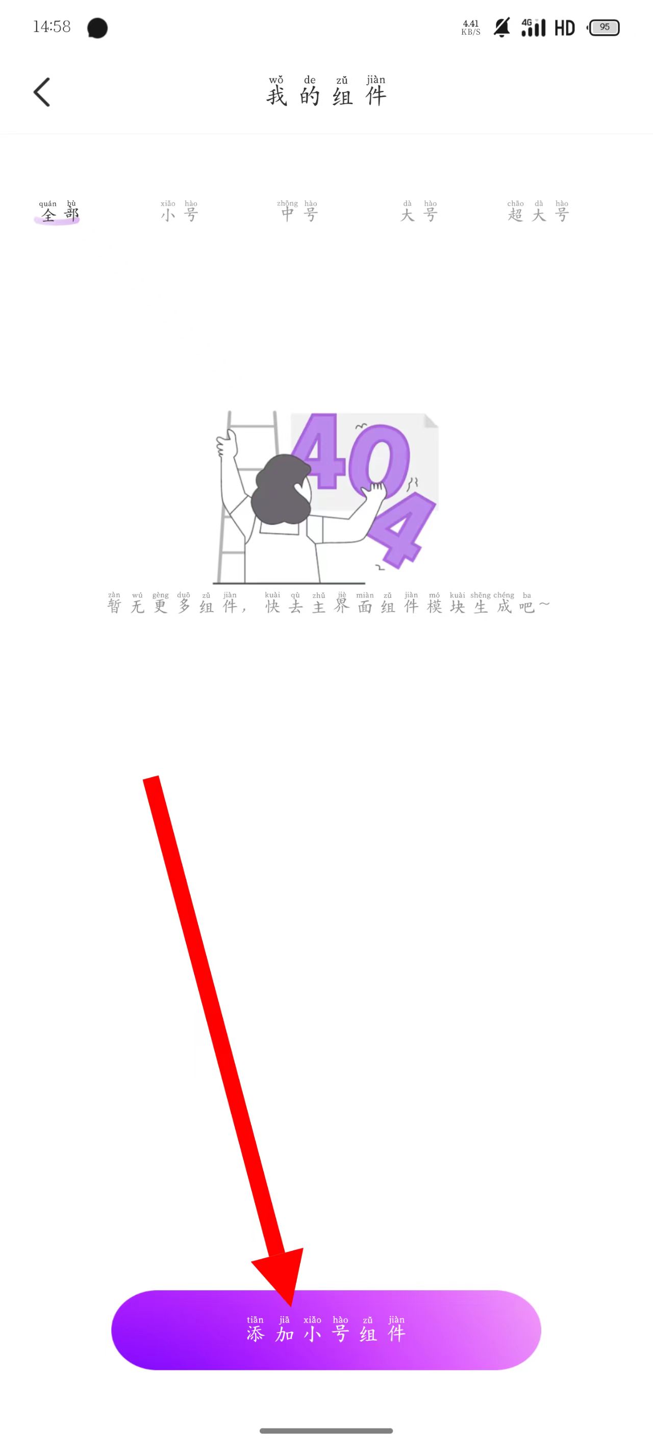2、进入我的组件页面后,点击底部添加小号组件。