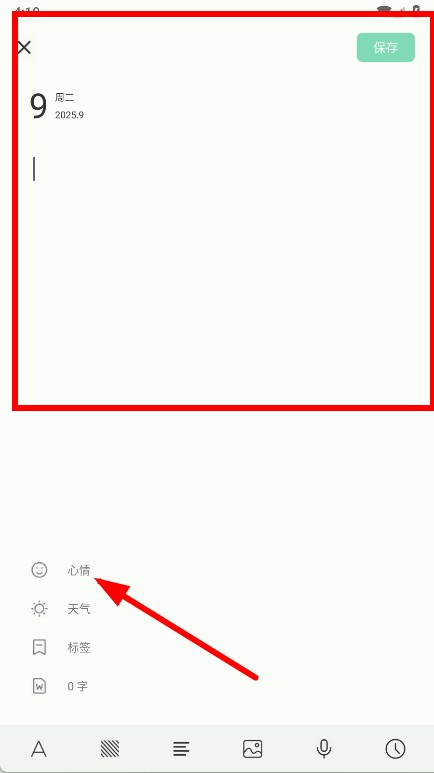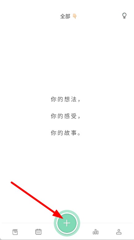 1、打开定格日记,点击底部绿色+按钮,进入日记编辑页面。
