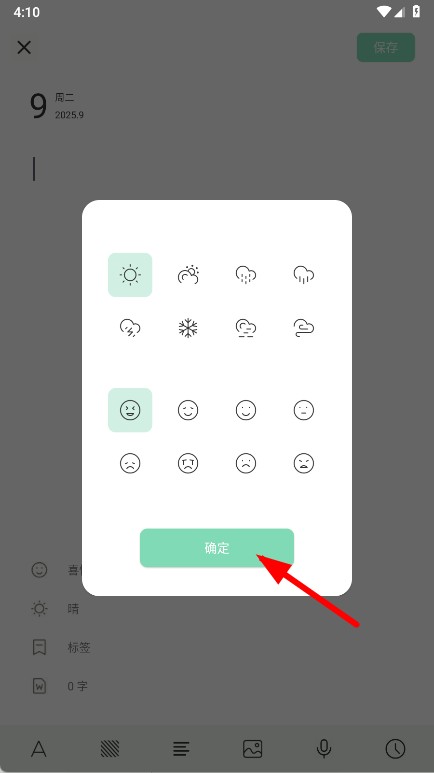 2、点击左下角的心情等选项,点击心情选择对应表情。