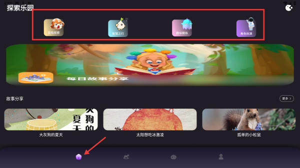 1、打开探索乐园应用,在首页探索乐园板块,可查看宠物乐园、糖果之行等功能入口。