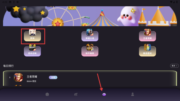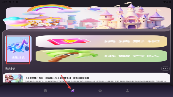 2、点击底部中间切换按钮,可进入包含猜歌挑战等内容的页面。