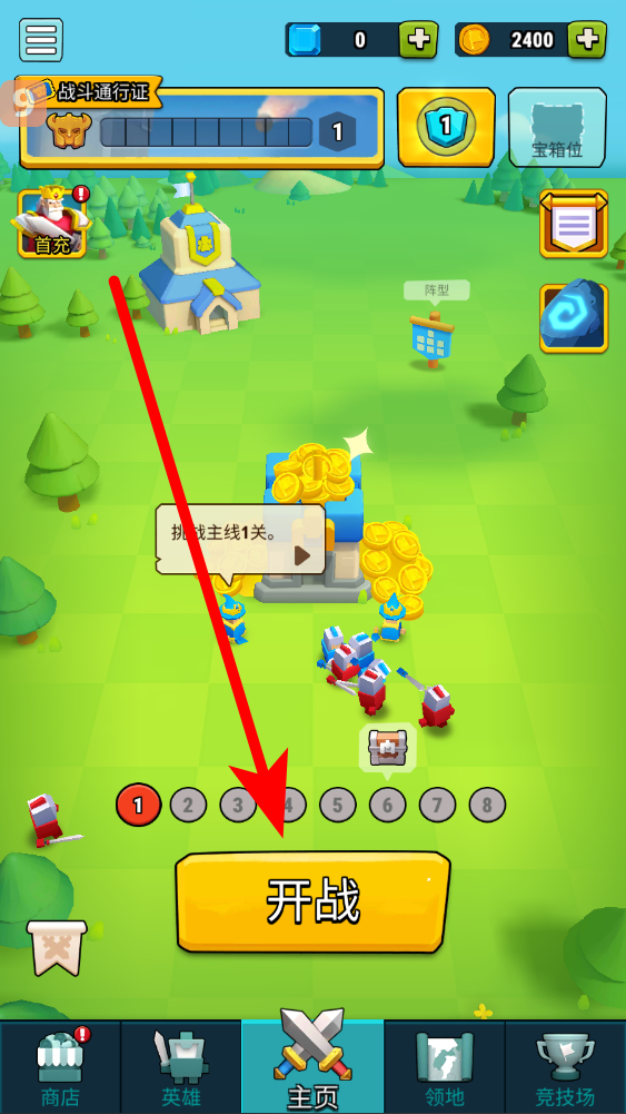 1、新手先准备战斗,在主界面,点击开战按钮,进入战斗准备阶段,此时可查看相关战斗信息,为即将到来的对战做好准备。