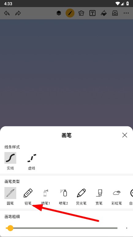 2、点击画笔工具,选择画笔类型,同时可调整线条样式、画笔粗细等参数。