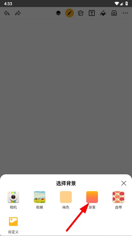 1、打开涂鸦画图APP,点击底部右侧图片图标,选择渐变背景。