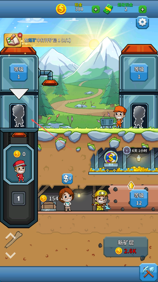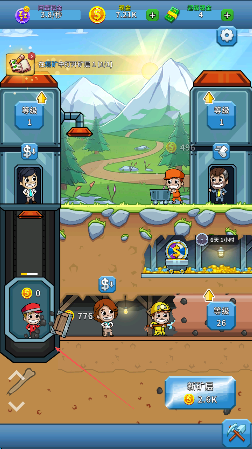 4、攒够足够现金,点击新矿层按钮,解锁新矿层以开采更多矿石获取更多收益。