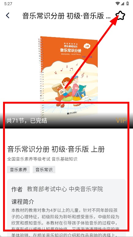 4、进入后,查看该教材的详细信息以及曲谱列表,点击右上角收藏。