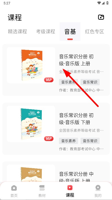 3、在音协考级教材列表中,选择对应级别并点击进入。