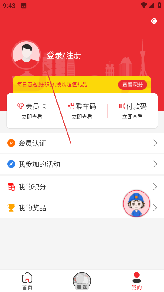 2、在个人中心页面,点击登录注册,进入登录页面。