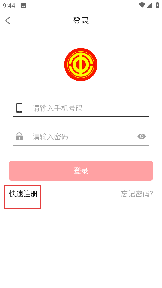 3、在登录页面,点击快速注册,进入账号注册页面。