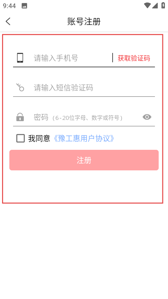 4、在账号注册页面,输入信息,勾选协议后,点击注册,完成账号注册。