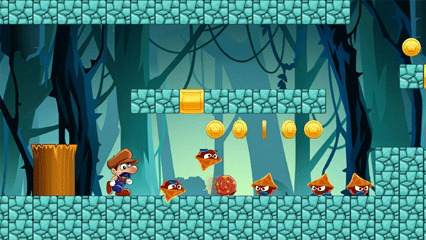 2、当遭遇蘑菇状敌人时,可操控角色跳跃,通过踩踏来消灭敌人,避免被敌人碰到。