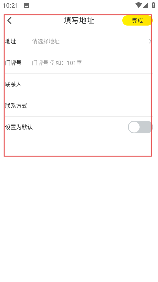 4、在填写地址页面,填写信息后,点击完成,添加新地址。