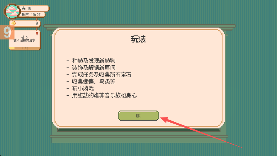 1、点击玩法界面的OK按钮,关闭玩法说明,正式开启游戏。