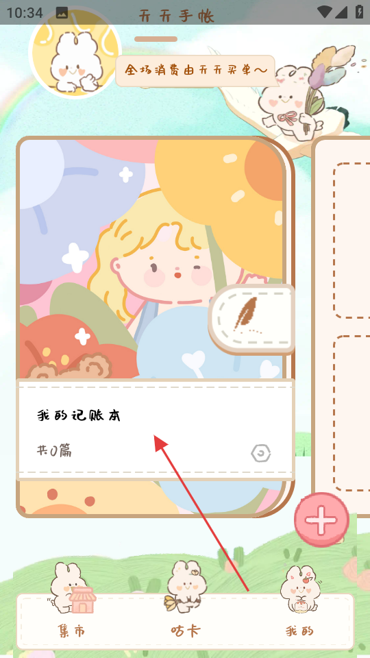1、在开开手帐首页,点击我的记账本,进入我的手帐本页面。